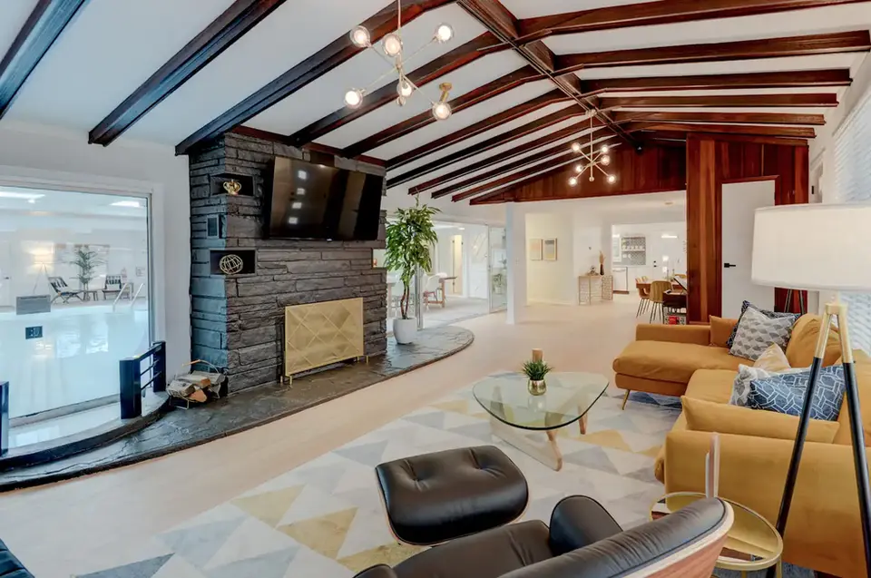 Experience the charm of 'The Elvis Retreat House,' a unique Airbnb featuring a luxurious heated indoor pool for an unforgettable stay.